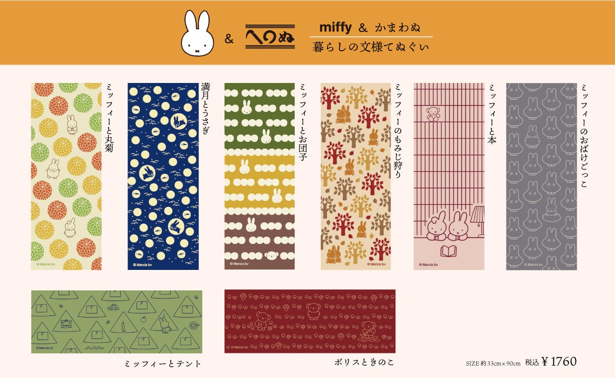 世界中で愛されるミッフィーが秋らしいデザインの手ぬぐいと小風呂敷に「miffy &かまわぬ ~暮らしの文様 vol.5」が発売決定