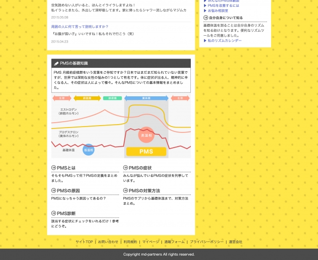 株式会社MDパートナーズ(本社:東京都港区 代表取締役社長:星田洋伸)は、PMS・月経前症候群に悩む女性のための情報交換サイト【PMSマニア】を2015年5月28日に正式リリース致しました。