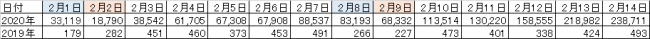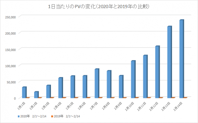 昨年同時期と比較して、1日当たりのPV(ホームページの閲覧数)を比較しました。