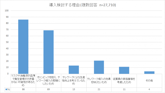 市場でマスクや消毒液など衛生管理品が品薄で調達できず、従業員に十分な新型コロナウイルス対策をお願いできない状況にあるため、在宅で業務が可能な環境を早期に構築したいというお考えが圧倒的多数でした。
