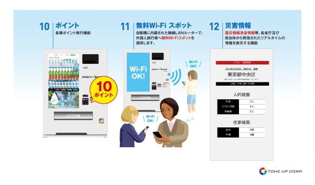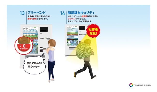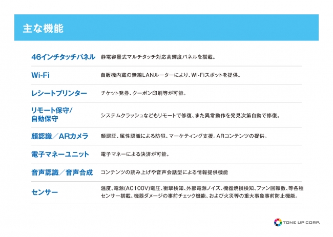 トーン・アップでは、次世代の社会インフラとして期待されている自動販売機『スマートベンダー』を全国各地で設置を進めており、販売効果・集客効果・広告効果の実証実験を実施しております。