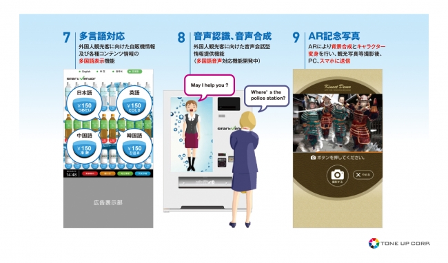 タッチパネルで飲料購入・周辺情報表示・多言語対応など、国内外の旅行者に便利な機能を搭載