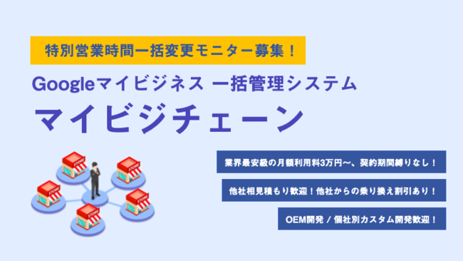 【Googleマイビジネスの特別営業時間編集が無料対応に! 】緊急事態宣言解除に伴う特別営業時間対応多店舗一括管理なら「マイビジチェーン」