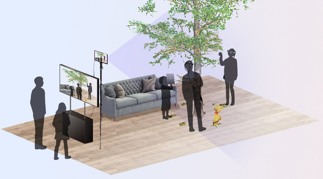 これまでのMagic Leap 1体験は、プレイヤー以外に内容が共有できないことが大きな課題でした。しかし、curiosityが独自開発したスペクテータービュー(リアルタイム第三者視点映像)により、プレイヤー以外の方も観客として体験を共有することが可能になりました。