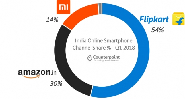 カウンターポイント・テクノロジー・マーケット・リサーチ (英文名: Counterpoint Technology Market Research 以下、Counterpoint社)は、2018年第1四半期に、インドのスマートフォン販売チャネル全体の中で、オンライン販売のシェアが38%を記録したとの最新の市場調査を発表致しました(オンライン限定販売の製品投入や、同年第1四半期の後半における強力なプロモーションによる効果も含む)。