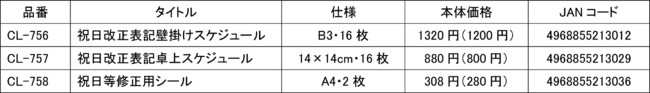 ●祝日改正表記壁掛けスケジュール (CL-756)