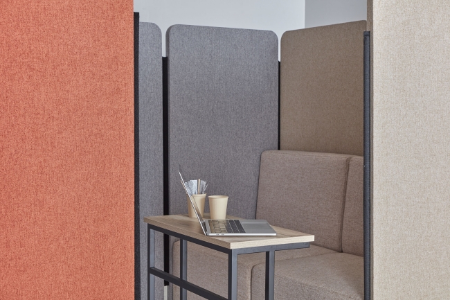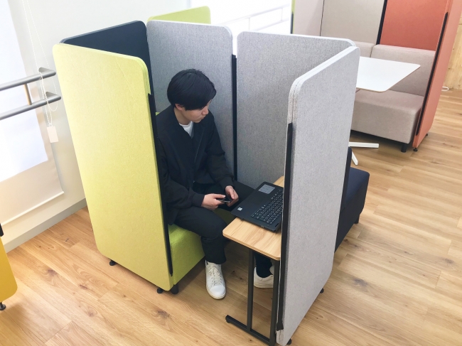 設置が簡単で工事が要らないので、【シェアオフィスの間仕切り】や、【オンライン商談】のブースとしての活用も増えています