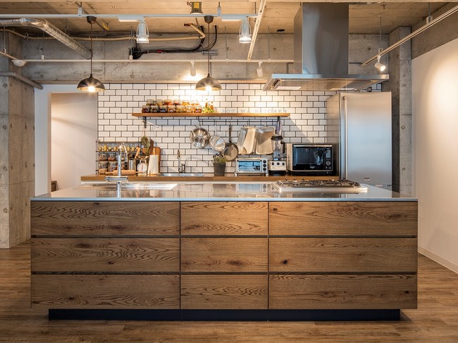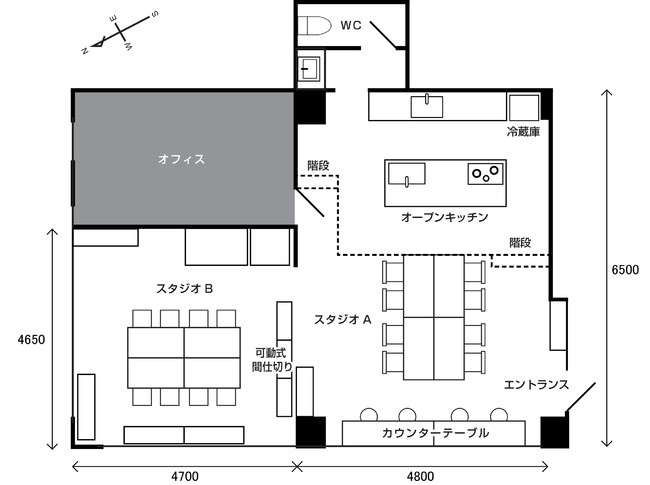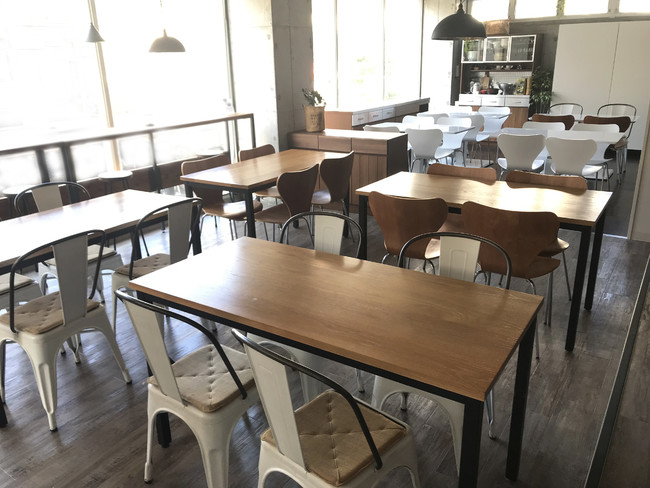 そしてこの度、フロア拡張により、座席数40席、50名以上収容できるスタジオとなりました。無垢の木材をベースにしたオープンキッチンのあるカフェのような空間と、コンクリート打ちっ放しの都会的な2つの空間があり、さまざまなシチュエーションで撮影していただけます。