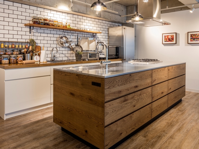 アイランドキッチンのため、PRイベントでのデモンストレーションに最適です。また、料理のムービーやスチール撮影などで使用する”生鮮照明”の導入により、生鮮食品の持つ本来の色合いをより美しく、美味しそうに表現できます。
