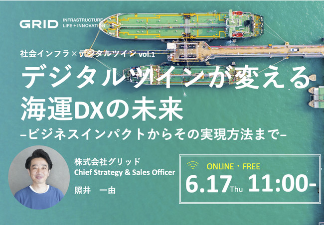 株式会社グリッドは、「デジタルツインが変える海運DXの未来−ビジネスインパクトからその実現方法まで−」をテーマにしたオンラインセミナーを2021年6月17日(木)に開催することをお知らせ致します。