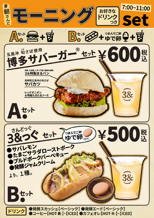 株式会社タケノ(本社:福岡市博多区博多駅南、代表:竹野孔)は、"発酵"に着目した「3&~サンド~」の3号店となるVIERRA小倉店を、2021年6月30日オープンします。1号店ガーデンズ千早店で人気の「博多サバーガー」のラインナップを増やしました。7月1日からはワンコインモーニングセットの提供も開始します。