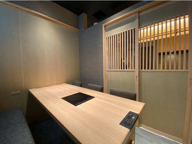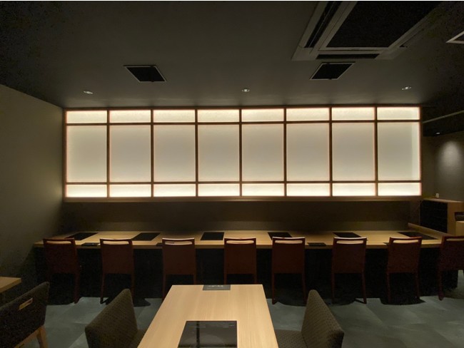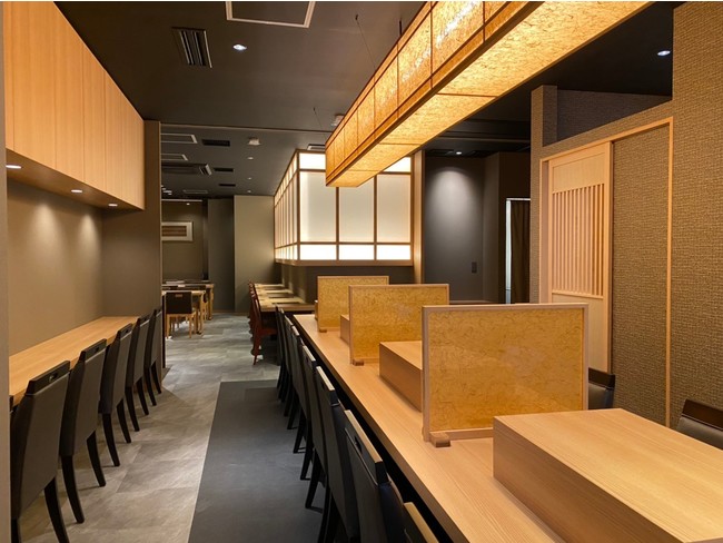 華味鳥のイメージとかけ離れないように無垢材や木を多用し、ぬくもりを保ちつつ意匠照明や床素材にモダンさを取り入れて独自のテイストを表現している。
