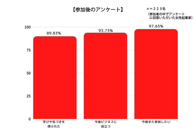 参加理由や課題にあがっていた、事業ノウハウの取得や女性起業家同士のネットワーキング構築につながったことが分かりました。