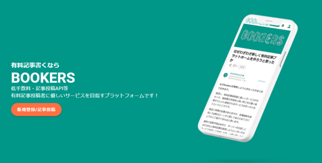 BOOKERSは個人が有料記事を簡単に販売できるプラットフォームです。定期購読マガジン・コピーガード・記事投稿API・グループ販売機能など様々な便利機能を、手数料5%から利用が可能です。弊社代表渡辺が副業として既存サービスを利用し有料記事を販売していた際に感じていた、既存サービスの「手数料が高い」「投稿用APIなどのほしい機能がない、要望しても反映されない」といった不満を解消するべく、有料記事販売者に強く寄り添ったサービスを目指し開発・サービス提供をしています。