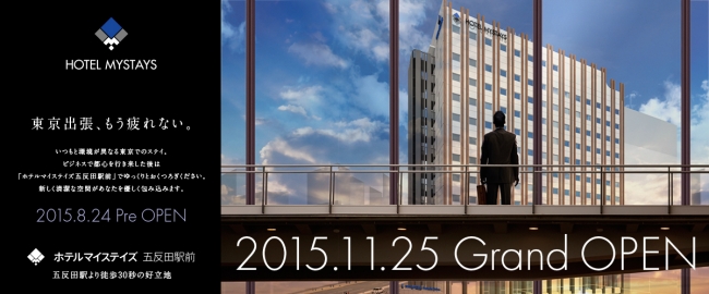 ㈱マイステイズ・ホテル・マネジメント(本社港区、代表取締役社長 麻野篤毅)は、展開する3ブランド(ホテルマイステイズ、フレックステイイン、マンスリーレジステイズ)に加え、2015年11月25日のグランドオープンに先駆け、2015年8月24日に「ホテルマイステイズ五反田駅前」をソフトオープンいたします。JR山手線五反田駅からわずか30秒。国内外へと通じる羽田空港には2駅先の品川駅から約5分、国内移動が便利な東京駅へは16分と、東京を行き来するお客様により便利なホテルです。