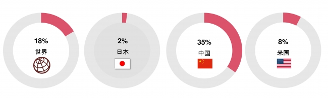世界全体では、昨年に引き続き1位米国(30%)と2位中国(29%)が拮抗する一方で、「他になし」という回答が3位(18%)になりました。