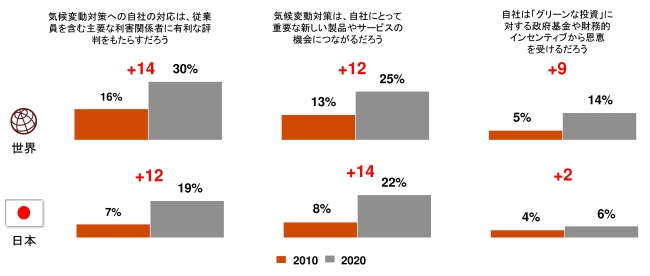 日本および世界全体で、CEOが気候変動を企業成長の機会と捉えていることがわかりました。