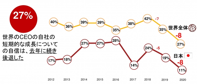 世界経済および自社の成長に対し、日本のCEOは悲観的見方を強める