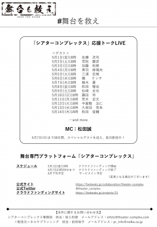 本プロジェクトに向けたクラウドファンディングが、多くの方々のご支援を頂いていること、弊社が本プロジェクトのクラウドファンディングの期間中毎日(5月1日~6月7日)応援トークライブの生配信を支援させて頂いていることをお知らせ致します。