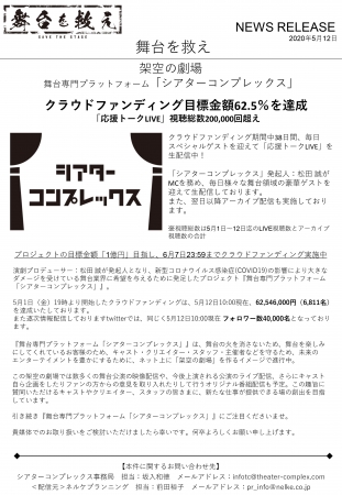 舞台専門プラットフォーム「シアターコンプレックス」クラウドファンディング目標金額62.5%を達成
