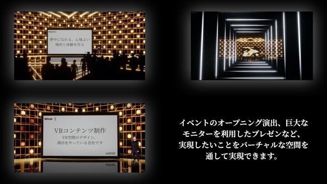 withIDでは、これまでバーチャル空間の制作や演出、デザインなどを行ってきました。また、VRの技術を用い、リアルな人物をバーチャル空間に瞬時に合成し、バーチャル空間でミュージックビデオの撮影をするなど、新しい技術を利用した作品の制作を行ってきました。