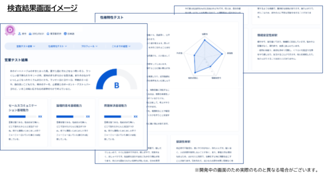 5,000人以上の営業職採用から導き出した独自ロジックによる営業適性検査と、ビッグファイブ理論による性格特性検査により、営業職としての採用適性を総合的に検査可能
