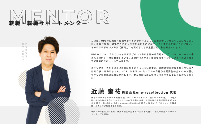 併せて、『ULTRA DESIGN SCHOOL』の「就職・転職サポートメンター」に弊社代表の近藤が就任しました。