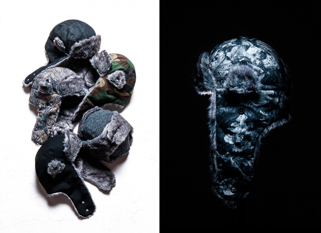 定番のワークキャップ[The Brigade]をベースにイヤーフラップがデザインされた[The Range]もまた、秋冬シーズンの定番アイテム。贅沢にシンセティックファーが採用されたイヤーフラップは頭頂部で固定された際に強調されるが、今季のラインナップにはそんな特徴が影を潜めてしまうほど、個性的なデザインが目白押し。デニムヘリンボーンやジャズネップオックスフォードで個性を出したブラックを基調とする3色に加え、グラフィカルな総柄が3種。秋冬のスタイル作りに一役も二役も買ってくれそうなラインナップとなっている。