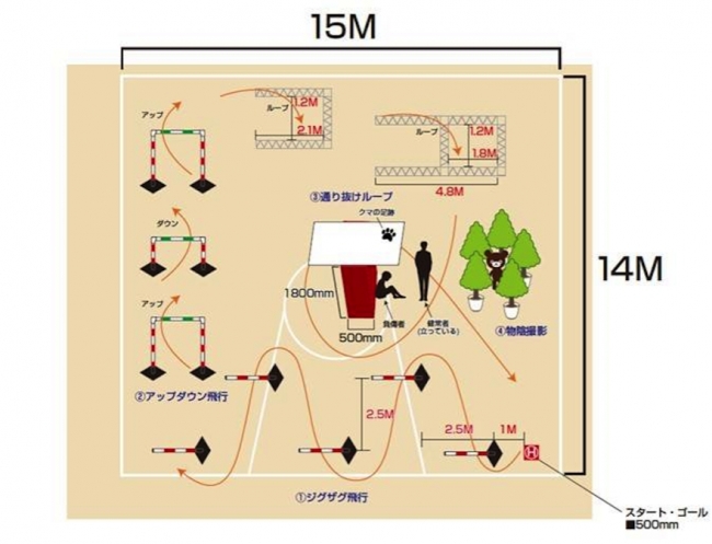 ・指定ポイント通過の有無、空撮の成否並びに飛行時間の長さにより得点を与え、総合得点により順位を決定します。
