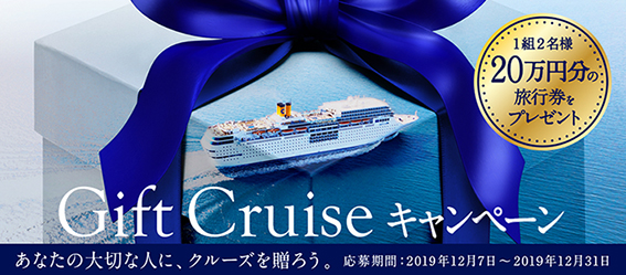 また、当キャンペーン開催期間に併せて「あなたの大切な人にクルーズを贈ろう。”ギフトクルーズ”ストーリー」を募集致します。応募された方の中から毎月1組2名様に、コスタクルーズオリジナルギフト旅行券(20万円分)をプレゼントいたします(http://bit.ly/CNR18-GiftGruise)。対象商品は2019年4月~8月に出航するいずれかのクルーズとなっております。https://www.costajapan.com/itinerary/