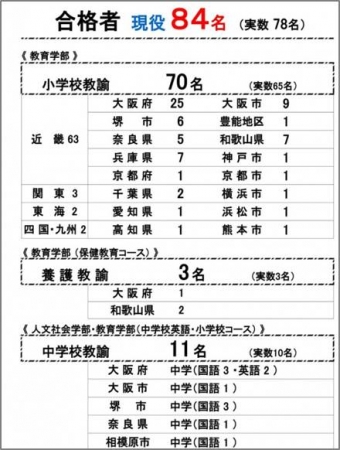平成31年度 教員採用試験 四天王寺大学より84名(実数78名)の現役合格生を輩出