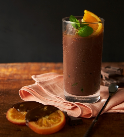 『オランジェットミント』は、バーボンウイスキー「Maker’sMark(メーカーズマーク)」を使用した、大人のデザートカクテルです。Maker’sMarkに生のオレンジとミントを入れてすりつぶし、そこにココアを加えることで、オランジェットをイメージしたカクテルに仕上げました。また、昨今、女性に人気のチョコミントの香りと味わいも同時にお楽しみいただけます。