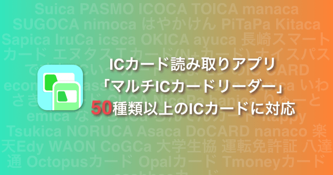 Suica等のICカード読み取りアプリの「マルチICカードリーダー」が新たに3種類のカードに対応し計50種類以上のICカードに対応しました