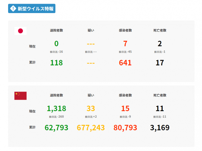 また、日中におけるCOVID-19の関連データを更新するようになりました。