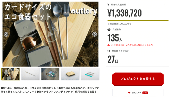 クラウドファンディング開始5日で目標金額を達成!世界最小・カードサイズのカトラリーセット【Outlery】"世界累計売上1億7千万円超え"の持ち運び食器の新定番!