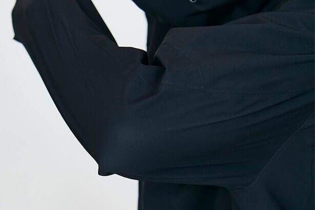 アウトドア向けウェアの制作で培われた、人間の関節の動きを計算してカッティングされた立体裁断によって、大胆な動きに対してもツッパリ感や窮屈感が少なく、動きのストレスを大きく軽減してくれます。