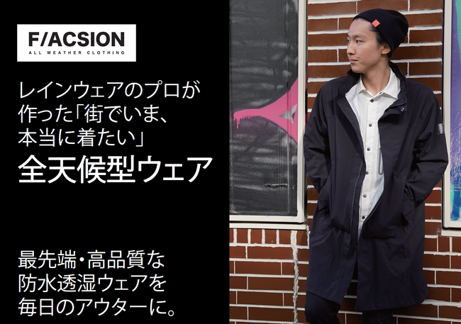 レインウェアのプロが作った「街でいま、本当に着たい全天候型ウェア」『F/ACSION (ファクション) 』を「CAMPFIRE」にてリプレイス!