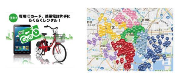 千代田区コミュニティサイクル「ちよくる」は、広域連携を実施している11区(千代田、中央、港、新宿、文京、江東、品川、目黒、大田、渋谷、中野)のドコモ・バイクシェアのどこのサイクルポートでも自転車の貸出・返却ができるシェアサイクルです。