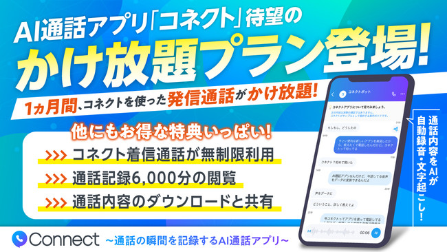 通話内容を自動録音・文字起こしAI通話アプリ「コネクト」かけ放題プラン提供開始!