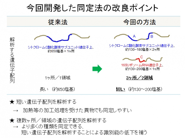 ・従来法より短い遺伝子配列に基づく同定法(3ヶ所/2領域の遺伝子配列をそれぞれ短め