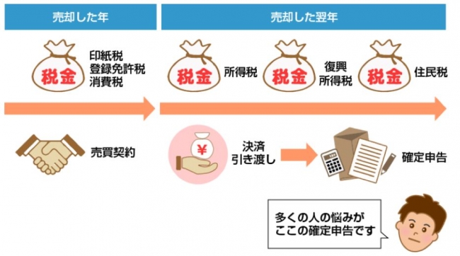 ▼不動産を売却した際の税金の種類と支払いのタイミングなど、不動産取引における税金は一般の方には、馴染みが薄く難解な専門用語も多数あります。