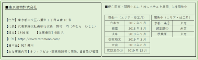 東京建物株式会社(本社:東京都中央区、代表取締役 社長執行役員:野村 均)と株式会社カンデオ・ホスピタリティ・マネジメント(本社:東京都港区、代表取締役会長兼社長 穂積輝明)は、京都市中京区にて伝統的な町家を改修し活用したホテル「カンデオホテルズ京都烏丸六角(仮称)」(地上10階、延床面積約3,453.28㎡)を、2021年6月に開業することとなりましたのでお知らせいたします。