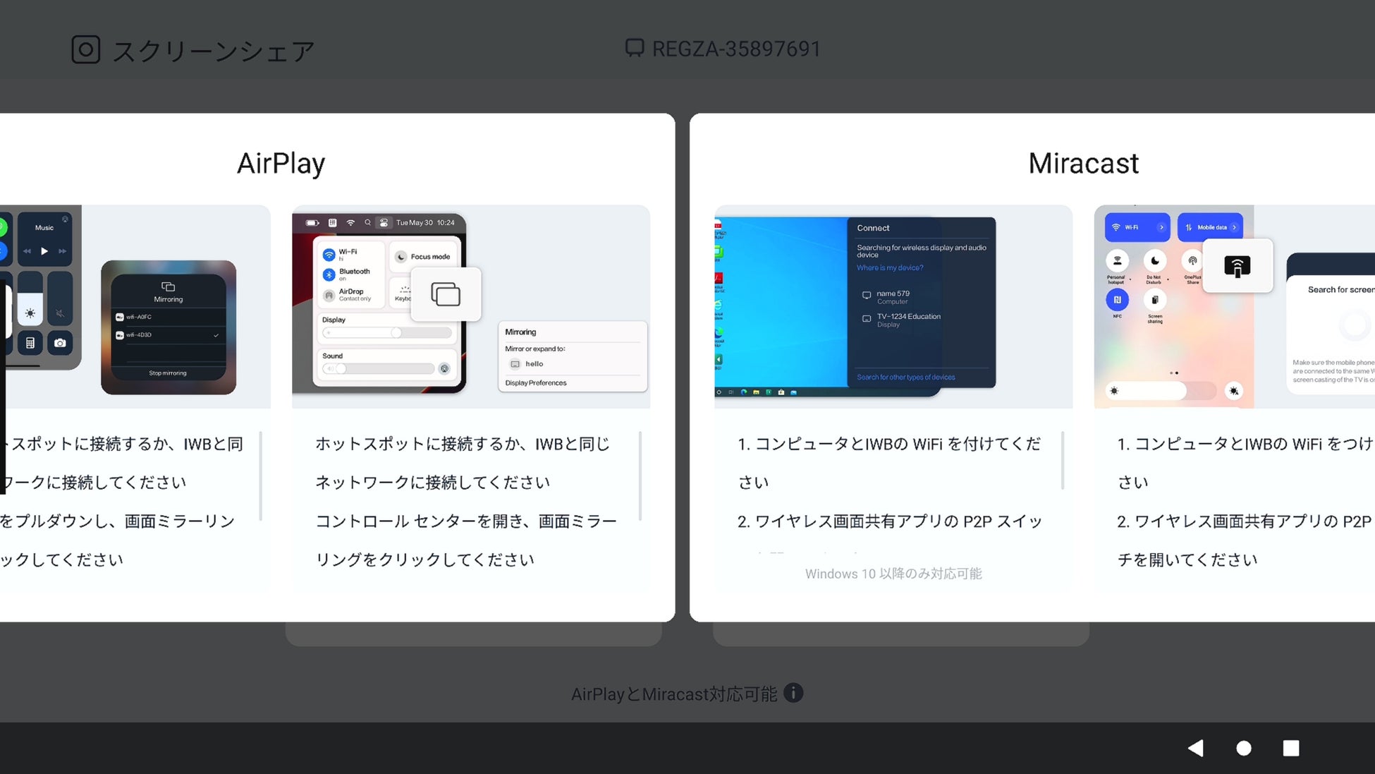 同一ネットワーク内にある複数の“レグザキャンバス”と画面共有が行えます。