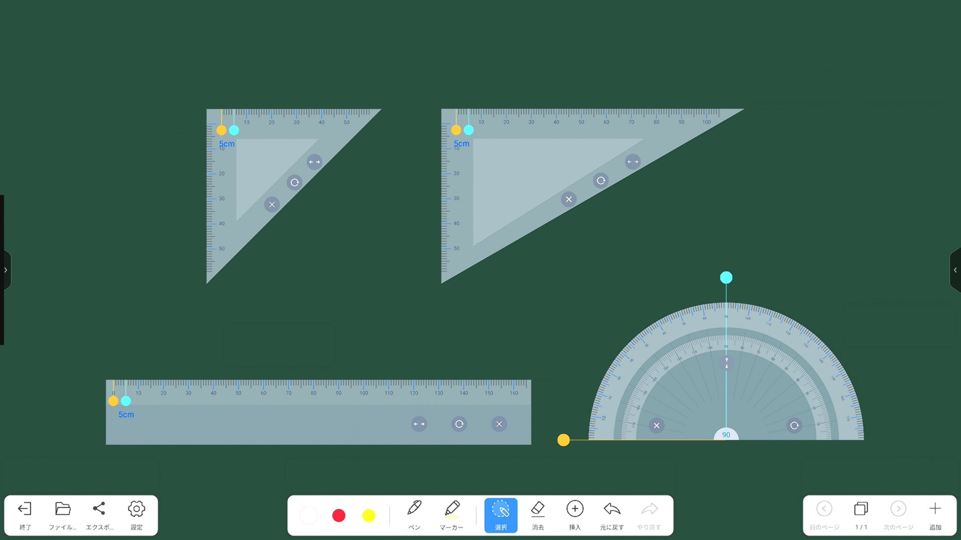 また、図形ツールは三角定規や分度器などもご利用いただけます。