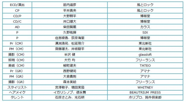 制作スタッフ :風とロック/株式会社博報堂/株式会社東北新社/株式会社アマナ