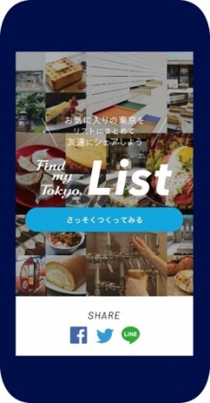 「Find my Tokyo. List」は、お気に入りの東京を、リストにまとめて友達にシェアできるWEBサービスです。