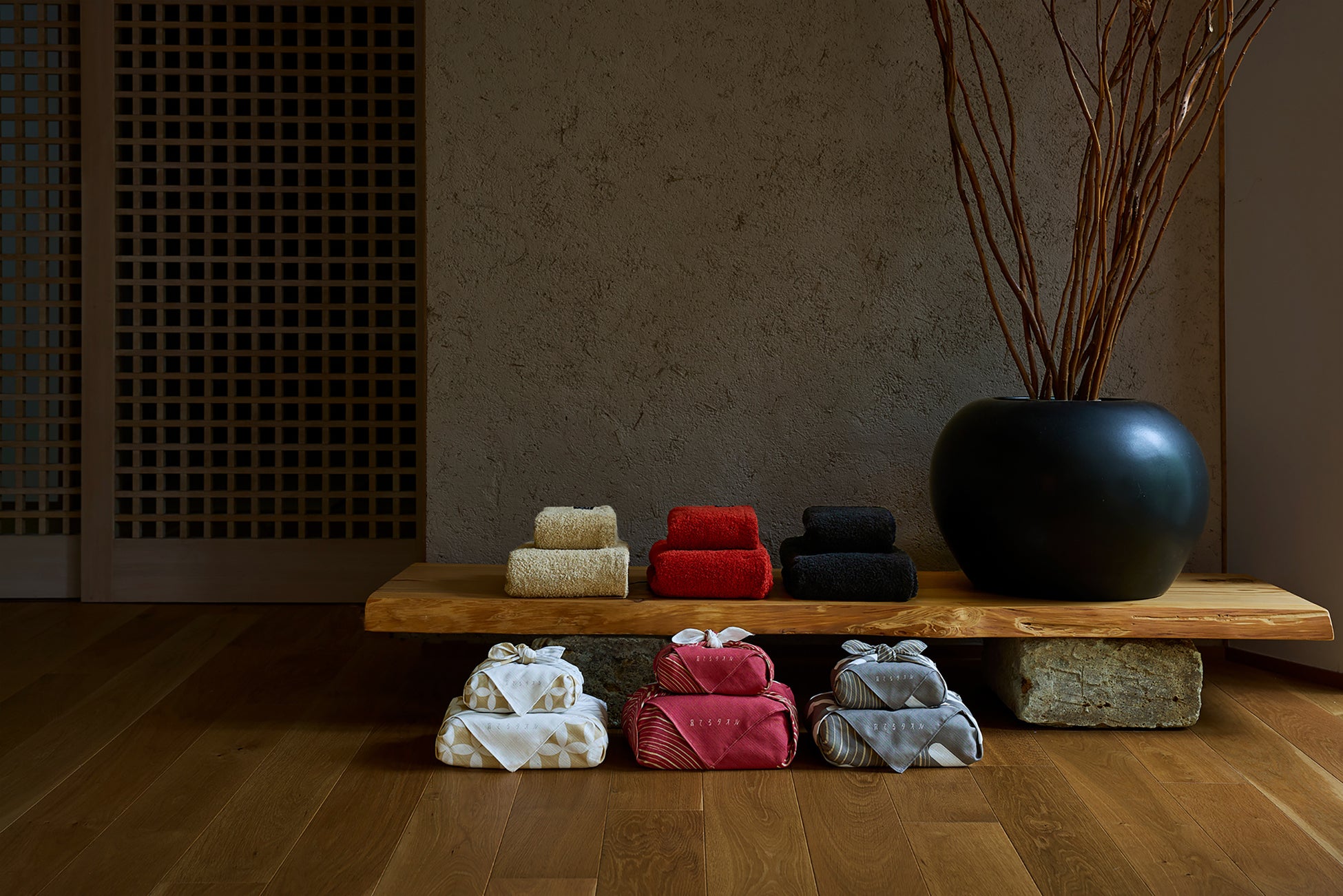 タオルと風呂敷、どちらも日本の暮らしに根づいたもの。