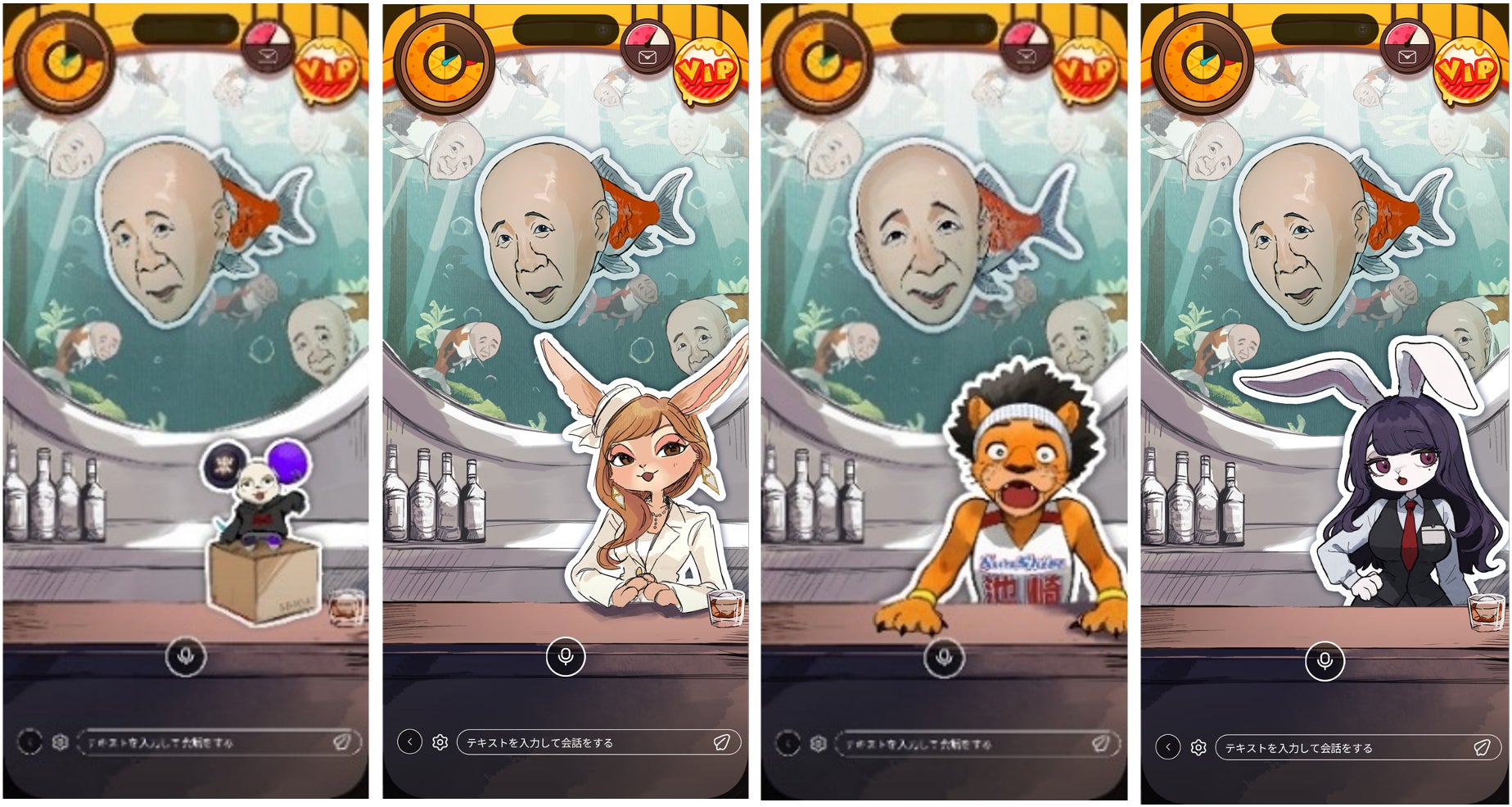 今回登場するのは、洗練されたオーラをまとうセレブな実業家ウサギ・神田うの、全力テンションでみんなをを沸かす超絶怒涛のお笑い芸人ライオン・サンシャイン池崎、しっとりと妖艶なBar店員のウサギ・真島なおみ、そして唯一無二の存在感を放つ不思議なお笑い芸人の人面魚・ひょうろく。それぞれ数時間にわたる音声収録にご協力いただき、声・性格・リアクションの癖までを細かく反映した、“まるで本人”のようなAIキャラクターが誕生しました。
