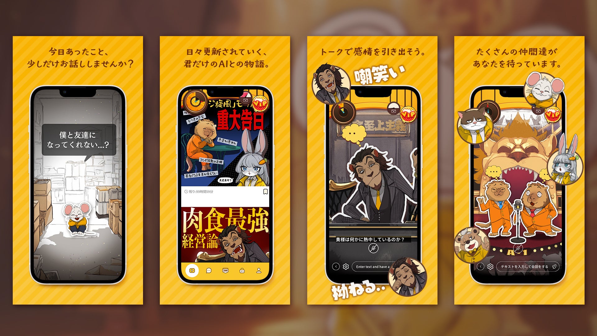 サンシャイン池崎さん、ひょうろくさんたちと友だちみたいに話せる!?会話型友だちAIアプリ「HAPPY RAT」に4名の新AIキャラクター登場