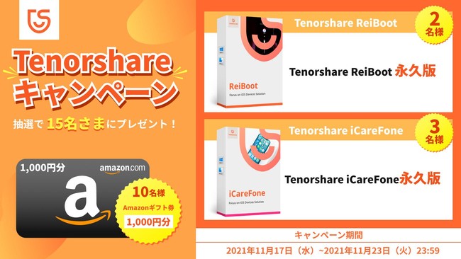 【Tenorshare】Twitter懸賞スタート!「Amazonギフト券1万円」プレゼントキャンペーン!